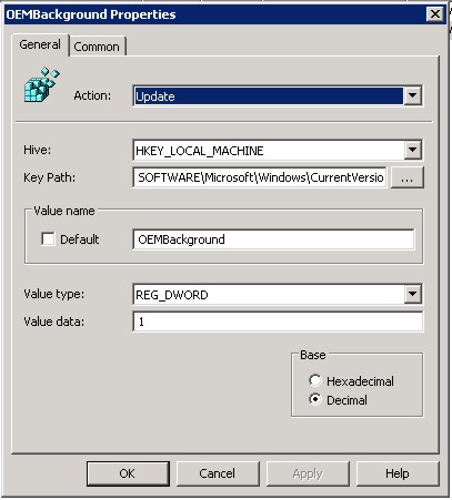 denominado OEMBackground al que le pondemos un valor 1
