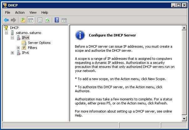 Observese que no hay scopes y que el server no está autorizado por AD. Ahora bien, al ejecutar el comando, no pueden darse errores, ya que la ejecución es binaria, es decir, o se completa totalmente o falla por completo.