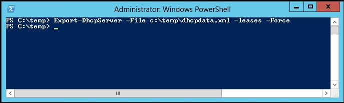 Similar a netsh, en powershell el comando para exportar data sería Export-DhcpServer -File C:\temp\dhcpexport.xml –leases o bien Export-DhcpServer -File C:\temp\dhcpexport.xml -ComputerName NombreServerOrigen –leases si lo ejecutamos en forma remota